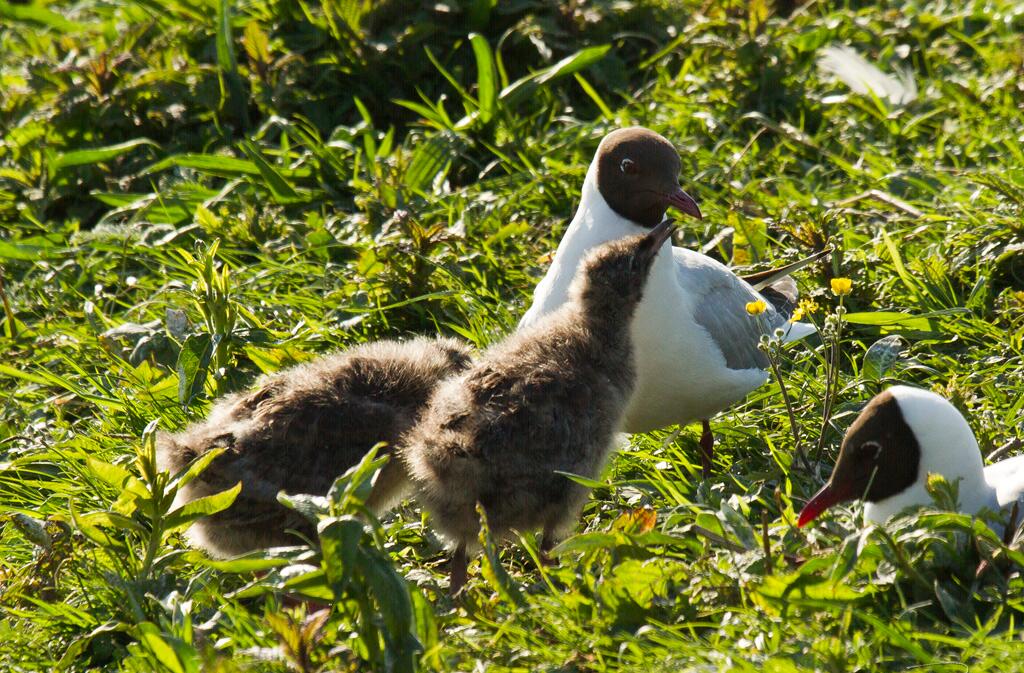 Mouette rieuse et ses poussins
